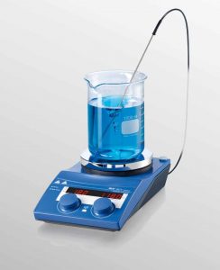 Agitator magnetic cu incalzire prevazut cu mufa pentru conectarea unui termoregulator de tip VTF Vertex, care asigura o precizie a temperaturii de ±0,5oC